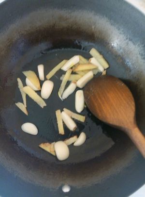 上色后加入准备的葱姜蒜八角,翻炒出香味