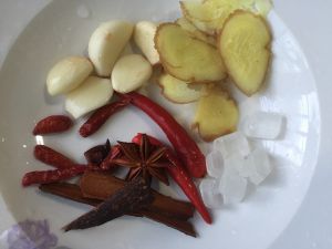 准备好冰糖 生姜 大蒜 八角 辣椒