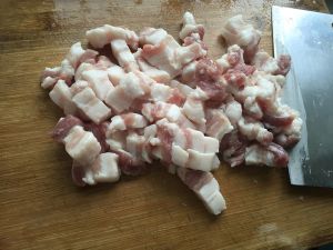 挑选适合自己口味的五花肉,肥一点瘦一点自己决定,切块备用