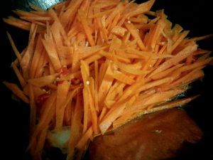 胡萝卜切丝。根据自己喜好,可削皮可不削皮。