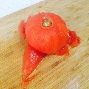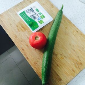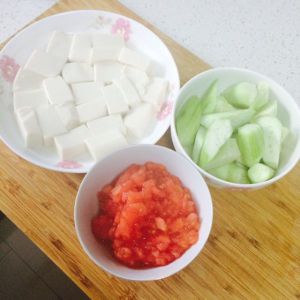 番茄剁碎 丝瓜切块 豆腐处理好备用