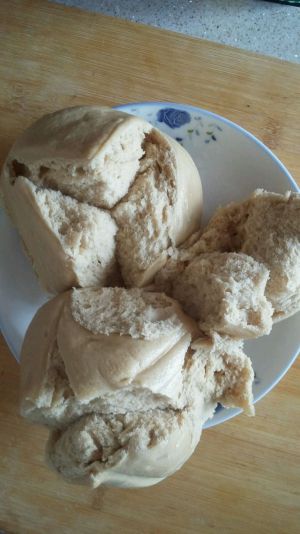 出锅咯,这花开的,被儿子拿走一个,那半个已经被我吃掉了。红糖有点放少了,下次多放点。