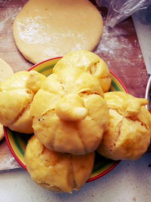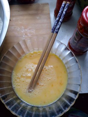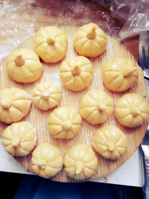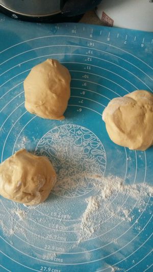 鸡蛋,奶粉,煮熟的南瓜,食用油,酵母粉一起揉匀,因为南瓜放的多,没有加一点水