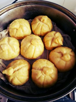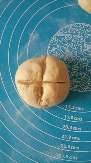 用刀在上面切上十字花,我切的好丑,哈哈,上锅摆好,盖锅二次发酵20分钟。然后开大火蒸20分钟,蒸好后再闷五分钟在开锅盖。