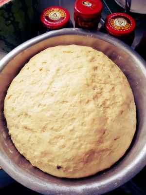 倒入酵母水,然后再根据吸水量加入红糖水。并将面粉揉成光滑面团。然后加入油。(这几部忘记拍照了~)揉完之后进行发酵~至两倍大。
