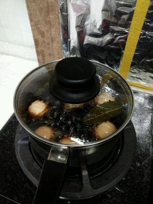 鸡蛋白水煮熟过凉水,后轻轻敲列开缝隙,煮时好入味!