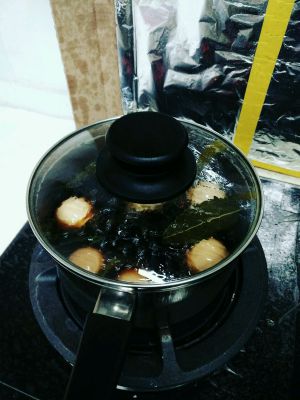 水烧开,加入辅助材料,再次烧开,放入鸡蛋