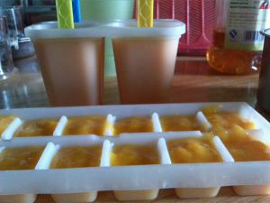 装模,放进冷冻柜!等吃吧!肯定好吃!纯蜂蜜纯芒果无任何添加。哦ye。。。