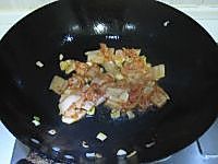 放入年糕煸炒至年糕变软,出锅前加入少许鸡精。