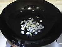 锅内到少许油,油热放入葱姜末,爆香后放入青椒,翻炒几下。