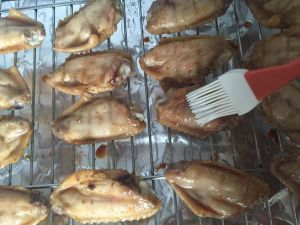 烤箱预热190度,烤盘上铺锡纸,放入鸡翅,烤25到30分钟,期间一到二次翻面,每次翻面都要涂层蜂蜜。