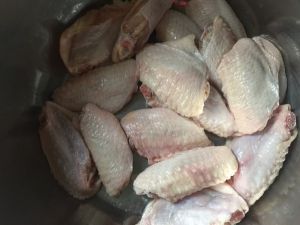 鸡翅洗净,双面花刀,便于入味。放在小料碗内至少腌制一小时。