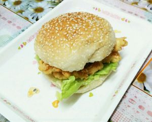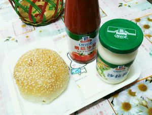把汉堡皮切开,依次加入鸡柳 生菜番茄酱色拉酱,就ok了。超级简单,美味瞬间到嘴