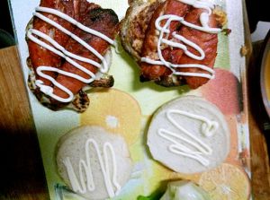 按自已喜好,挤沙拉酱,放青菜,鸡柳