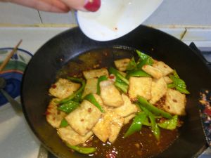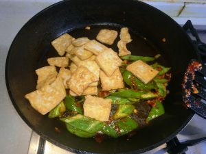 加入豆腐适当翻炒一下,注意力度不要把豆腐炒烂了