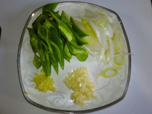 西红柿 辣椒 火腿肠 切块 水发木耳提前泡好 蒜切末