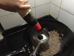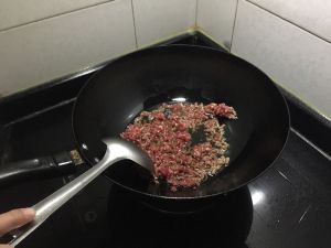 热锅冷油小火炒牛肉末,这样肉末不会粘在锅底!炒制牛肉末变色加入姜末。