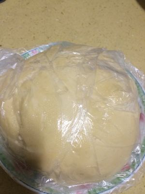 黄油熔化,糖,酵母放入牛奶中混合均匀,加入面粉内和匀稍揉至表面光滑,盖上保鲜膜约2小时,天气冷可放入有温水的锅内发酵