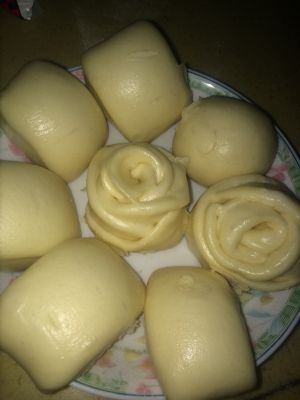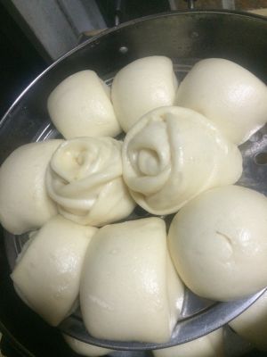 面团除了玫瑰花还能做别的阿~之前还有没用完的红豆沙,就做了几个豆沙包~