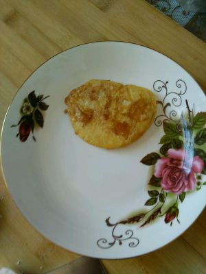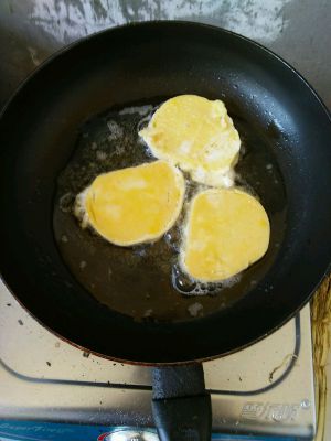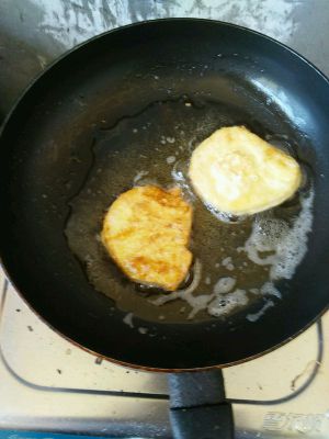 煎到一面金黄,翻面,继续煎,注意此时油温增高,可小点火。