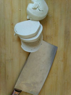 先将馒头切片,一定要凉馒头,因为形状好,而且口感好