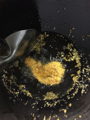 锅中倒入油后炸(不喜欢太多油,所以我把它煎熟了)