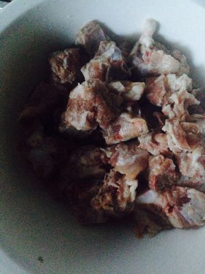 排骨洗净,锅内放水,倒入排骨,烧开,捞出,用凉水洗净沫沫。