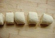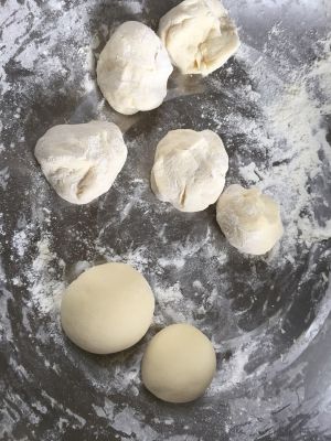 再把发酵好的面团再揉揉,可以撒些手粉一起揉,分成一小块一小块的,再逐个揉成光滑的面团