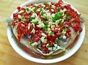将剁椒铺在鱼头上;