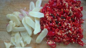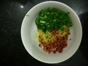 干辣椒、生姜、香葱剁碎备用