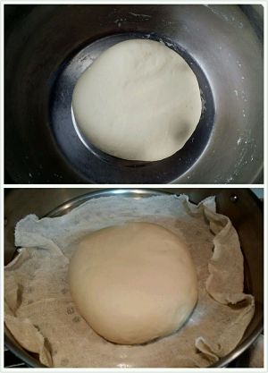 松弛过会再来揉面就不费劲儿了,轻轻松松的就揉光滑了,揉好后的面团儿继续盖上保鲜膜醒面2个小时;
