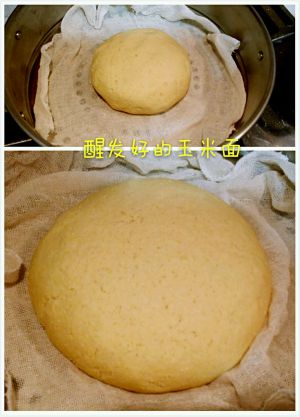 将100g玉米面,200g白面,3g白糖,酵母3g,水150g活成面团。