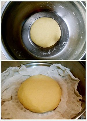 我们先把他们放到锅里来,然后盖上盖子醒发至体积的1.5倍大,现在的温度低,蒸锅下面我加了热水促进发酵,发酵好的面团儿可以用手指轻轻按一下,如果能迅速的回弹就说明面团儿已经醒好了;