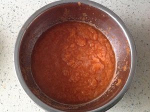 把胡萝卜削皮洗净后,用榨汁机榨成细腻的胡萝卜汁。
