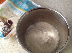 温水中加入酵母搅拌,静置一会儿至酵母完全溶解。