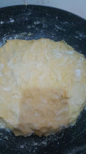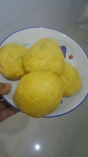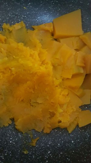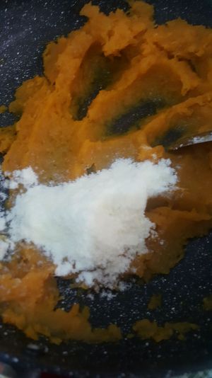 把南瓜切块,蒸熟。然后在把南瓜弄成泥,加入面粉.