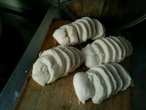 把馒头切好,放入冰箱,差不多20分钟即可拿出。