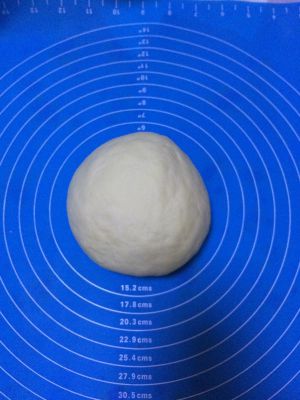 再揉,就能揉成光滑的面团了!然后盖上保鲜膜,放在室温稍微高点的地方发酵(我放暖气旁的桌子上),1-2小时大概,只要发到2倍发就可以了!后面步骤忘了照图片了