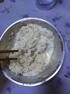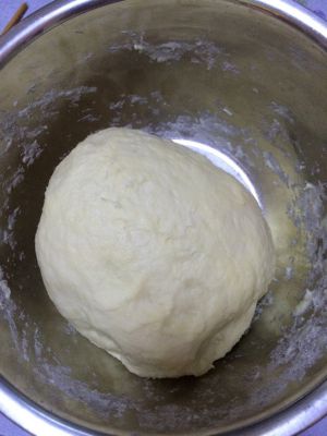 所有物品放在一个盆里,加水,下手揉成一个光滑的面团