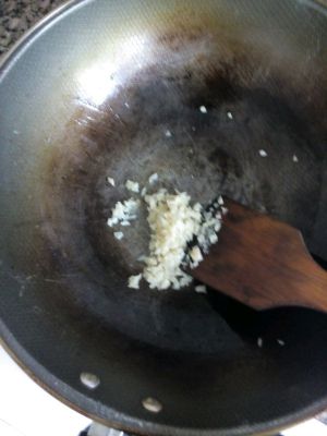 大蒜切小粒,热锅冷油煸炒出香味,加适量调味料调味。