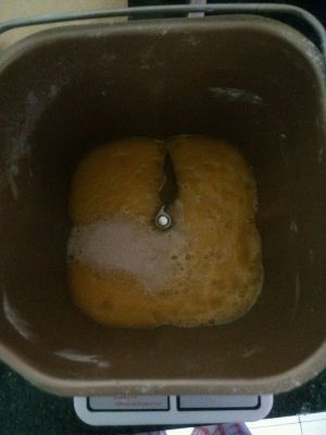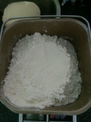 加入600克面粉。开启面包机的和面程序,20分钟。
