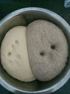 滚圆后放入盆中,发酵两倍大就行了。我又做了一份杂粮馒头。
