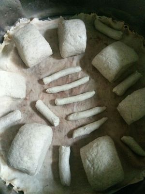 发酵到至少2倍大,最好3倍,加入泡打粉和少量水,加入红枣碎,揉匀至光滑的面团