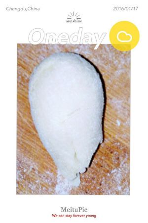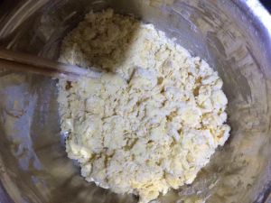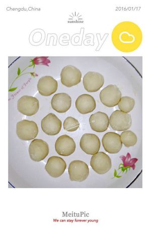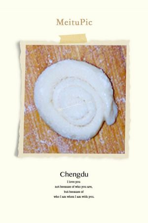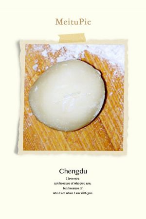 取一盆,用汤匙打7汤匙面粉,根据个人喜好加入糖,温水,用筷子搅成雪花状就行,然后用手揉成不粘的面团。放置一旁备用