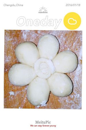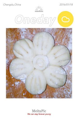 用牙签在花瓣上摁压出3条凹印,一个花朵馒头就做好了哦,简单吧!