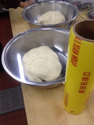 和好之后盖上保险膜让面团发酵,盖湿毛巾也行