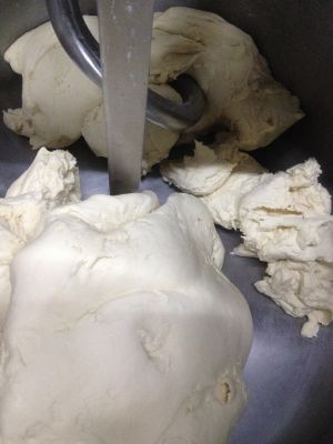 提前将酵母放入温水中搅拌均匀,静置5分钟后倒入盆中和成面团,这个不用揉的太光滑,成团就行。