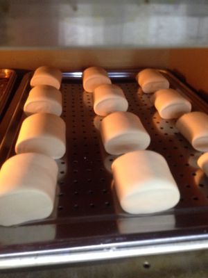 二次醒发好了,馒头饱满,表面光滑,摸起来又软又滑,就像摸那个的感觉一样…