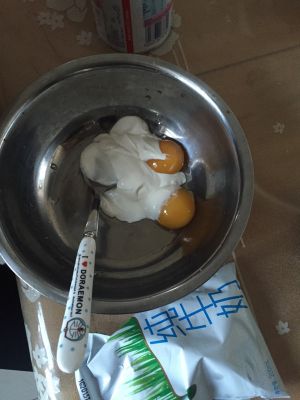 1.做的比较仓促。没打算要拍照的。哈哈。先把蛋黄和蛋清分开。只要蛋黄。在加入三勺奶油。本人没有称重的东西就凭自己了