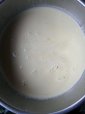 鸡蛋,牛奶,白糖搅拌均匀,过筛